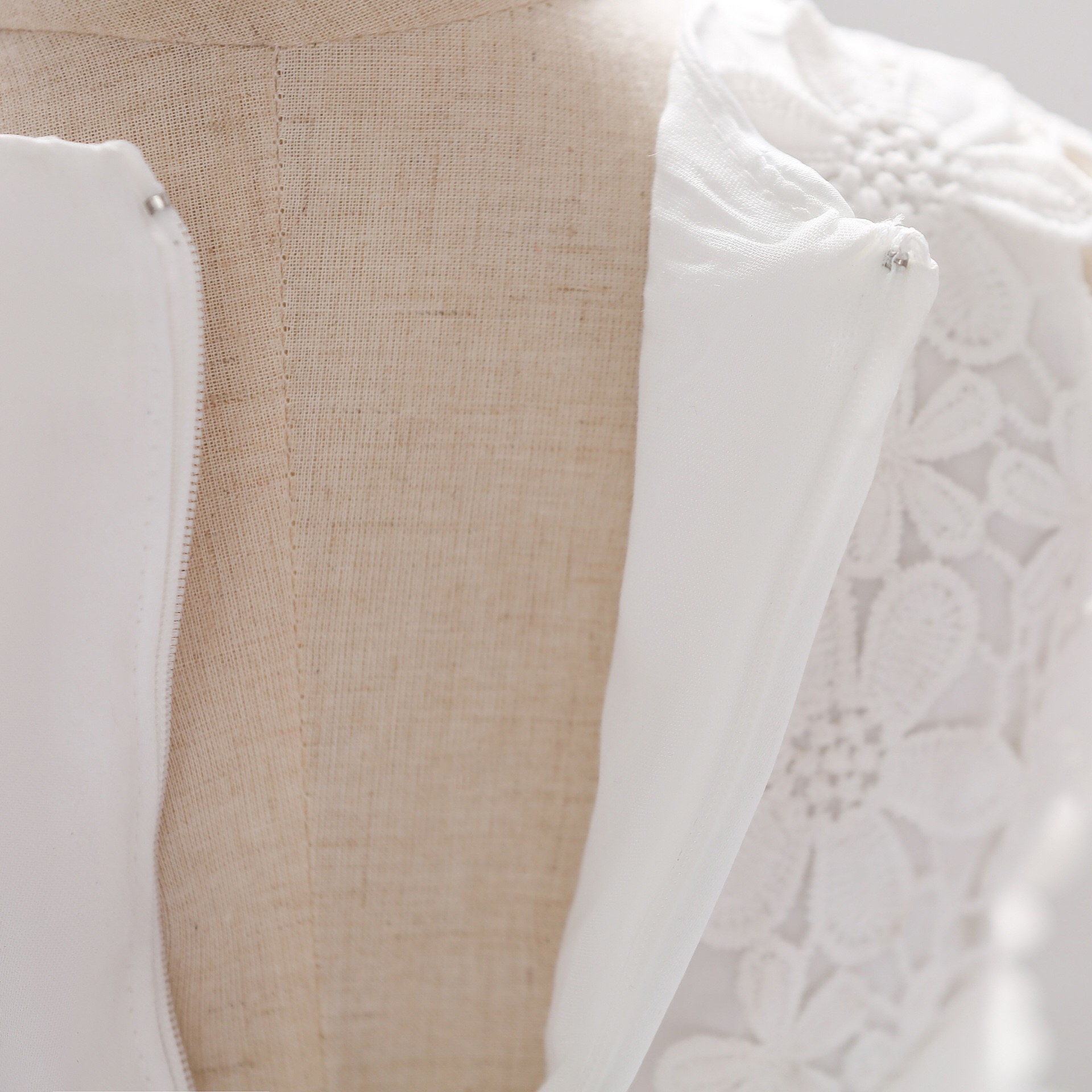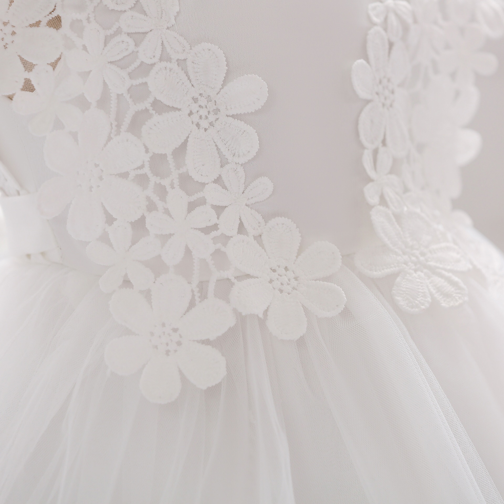 A baby girl baptism dress should feel gentle, classic, and appropriate for an important occasion. This design offers that kind of soft elegance with a balanced look that feels sweet rather than overdone. The floral accents add a delicate decorative touch, while the mesh tutu skirt helps create a fuller and more graceful silhouette.