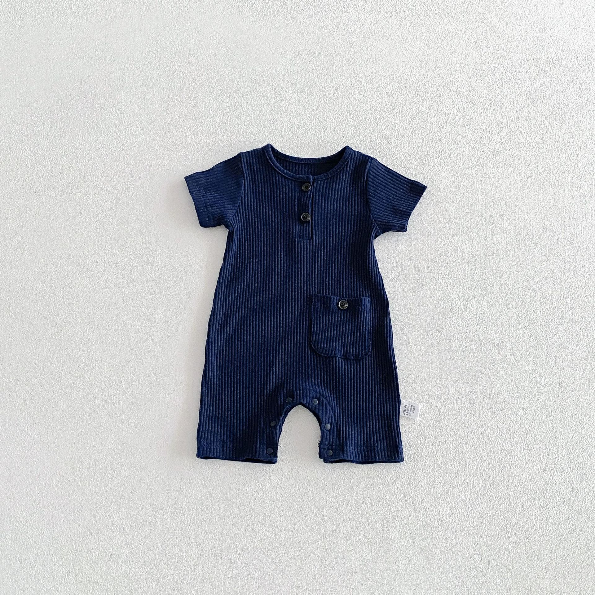A solid color baby bodysuit is always a strong choice because it gives parents more styling flexibility. Printed outfits can be cute, but solid color pieces are often easier to mix and match with accessories, layering pieces, and bottoms. This baby short sleeve onesie comes in navy blue and beige, giving parents two classic options that feel clean, easy to style, and suitable for regular wear.