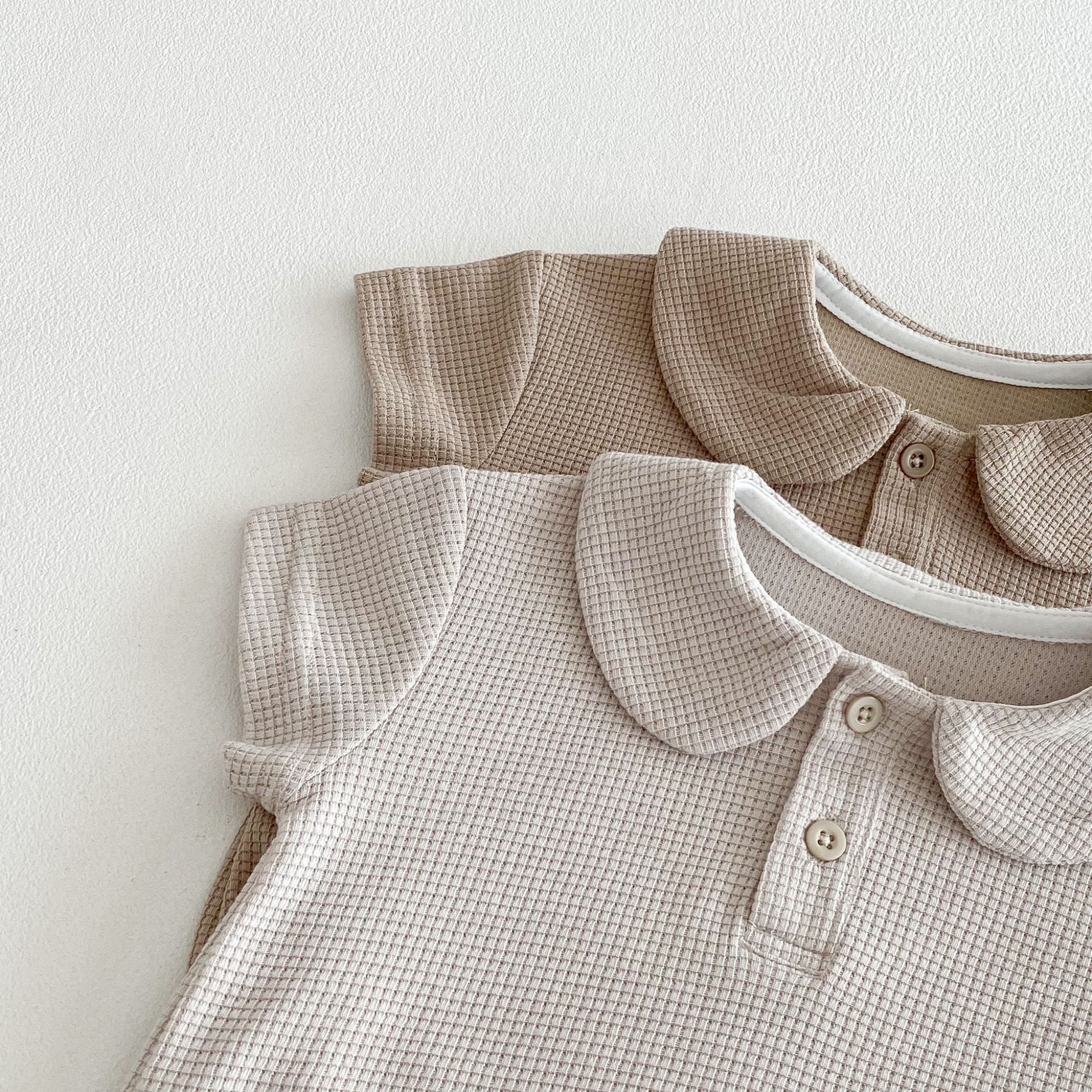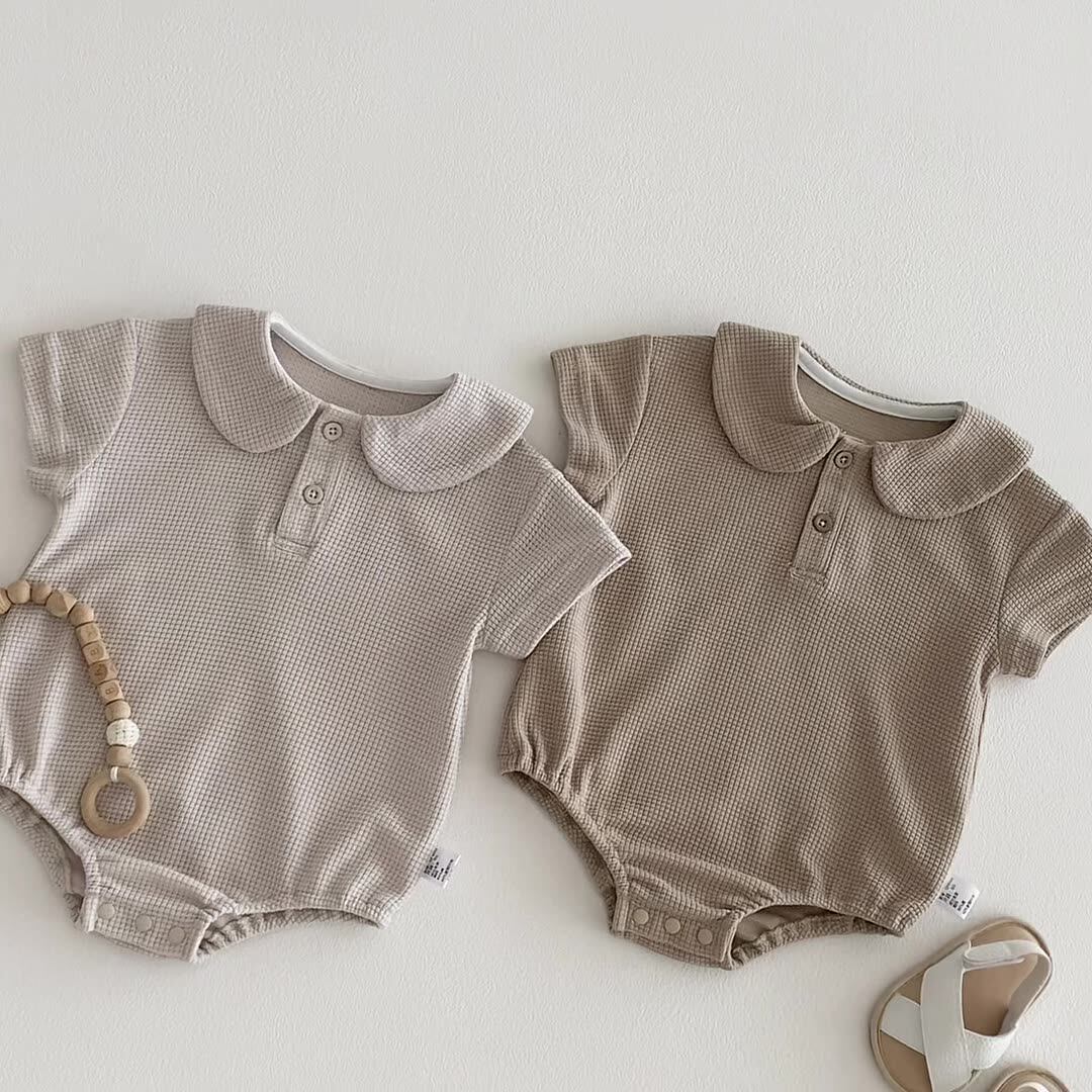 This baby waffle grid onesie stands out because it combines textured fabric, a simple solid color design, and a practical short sleeve shape in one easy outfit. The waffle texture gives it more visual character, the neutral tones make it easy to style, and the cotton blend fabric helps keep it comfortable for daily summer wear. It is a strong option for parents who want a baby outfit that feels classic, wearable, and a little more refined than a basic plain onesie.