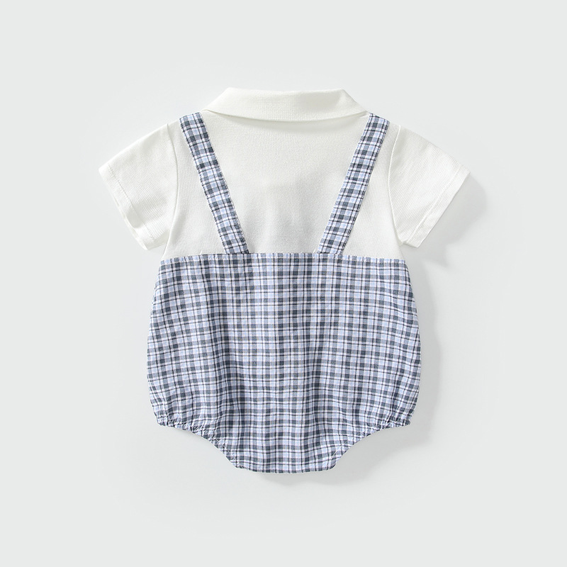 Short Sleeves Plaid Pattern Single Breasted Onesie with Turn-down Collar