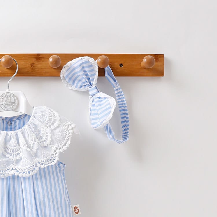 Stripped Pattern Ruffles Collar Onesie